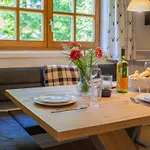 W obiekcie jest pełnowymiarowa kuchnia z kuchenką mikrofalową i lodówką. Wyśmienitych dań i specjałów kuchni środkowoeuropejskiej goście mogą skosztować w Landgasthof Klapotetz, w niewielkiej odległości od obiektu noclegowego. Apartament Hutte Taube leży 5 min piechotą od stacji kolejki linowej Ubungslift Rossalm.